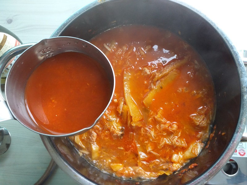 김치국물 넣기
