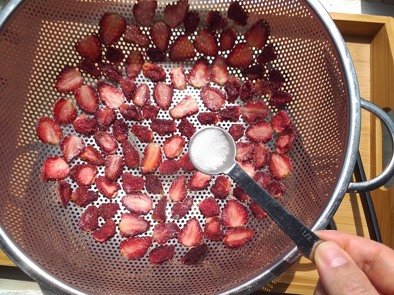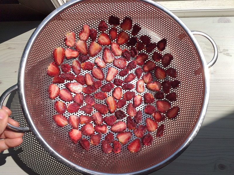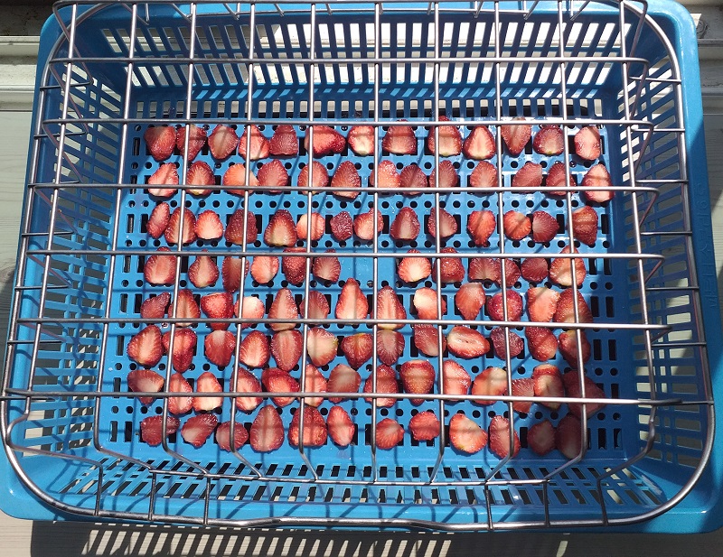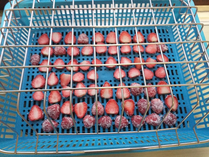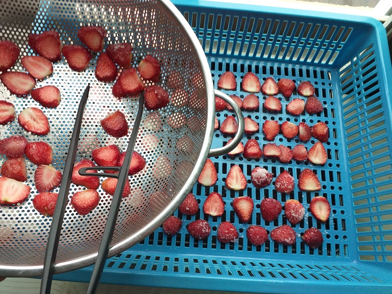 아까워 자투리 딸기로 딸에게 맛을 보입니다. 맛을 본 딸이 옆에서 성화입니다. 건조기로 빨리 말리면 되지 않는 냐고.