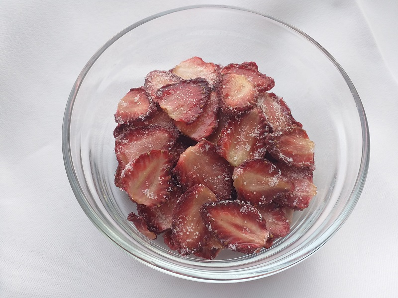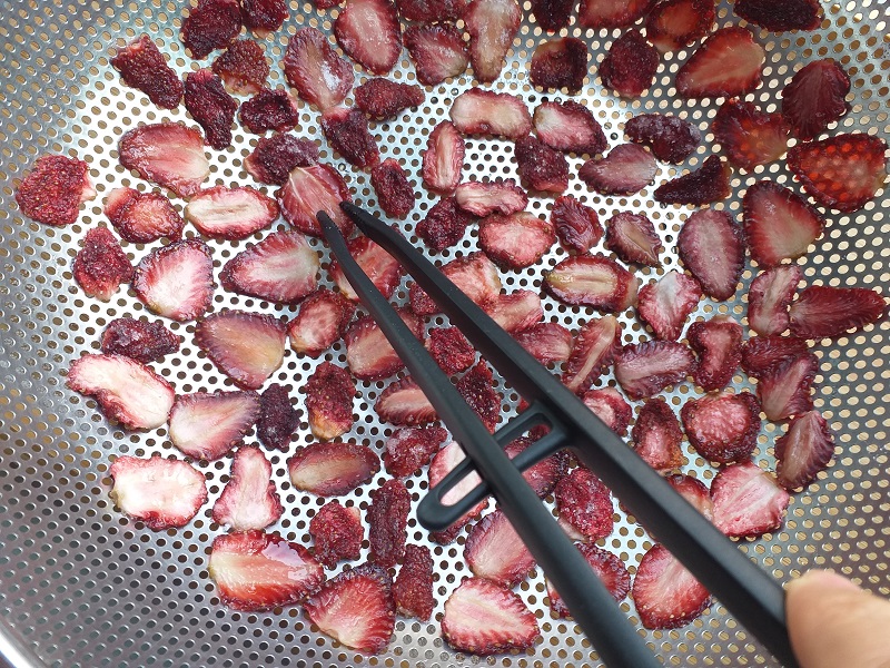 집게로 딸기 양 표면을 툭툭 쳐서 말림에 정도를 체크합니다. 드디어 완성입니다.