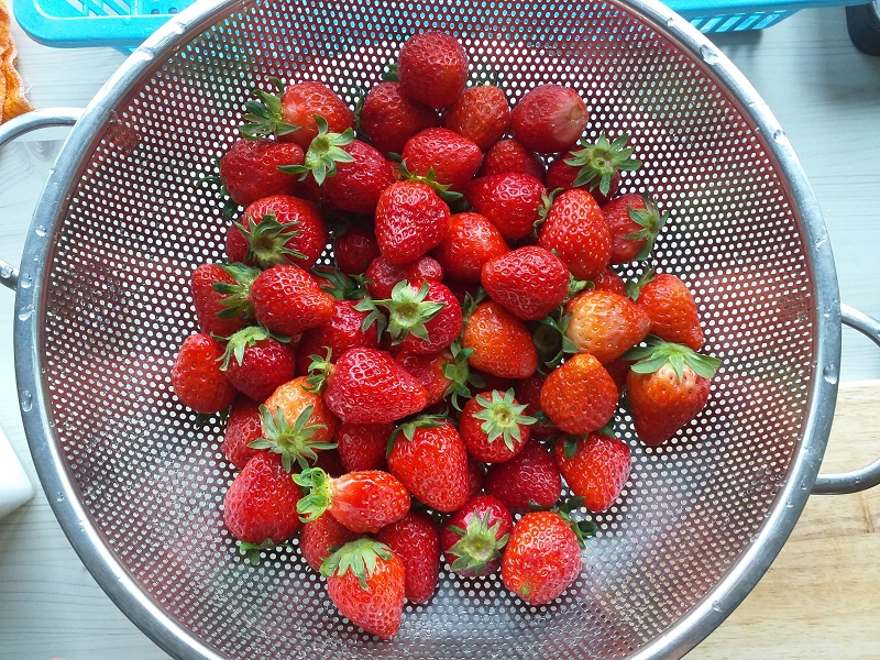 겉으로 보기와 다르게 딸기 양들 성격이 매우 급합니다. 벌써 단 물을 사정없이 뱉어 내기 시작합니다. 딸기 향기가 점점 강해집니다. 집에 있는 소쿠리란 소쿠리를 모두 동원하며 달 방앗간님처럼 스텐 소쿠리 갖고 싶지만 꾸~욱 참습니다.