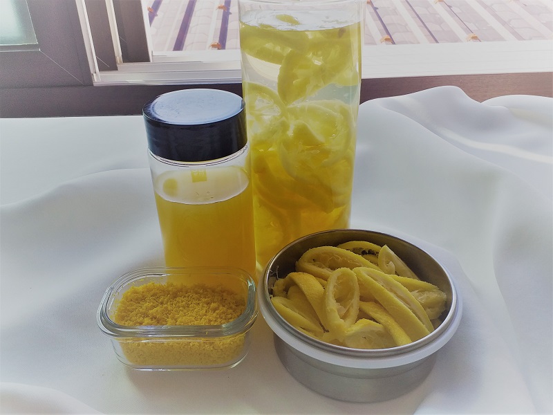 레몬 껍질을 활용한 레몬 제스트로는 레몬향이 상큼한 레몬 마들렌, 치즈 케이크 등 홈 베이킹 시 사용하고, 레몬즙은 베이킹뿐 아니라 생선구이 시 비린내 제거 등 각종 생선요리, 레몬 에이드, 레몬 팩, 레몬수 등 정말 다용도로 사용됩니다.