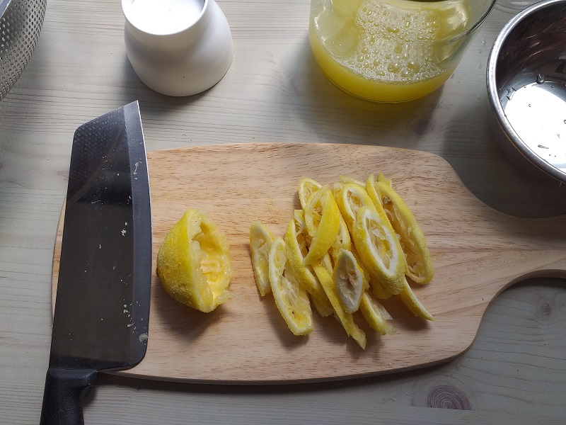 겉옷을 벗은 레몬, 역시나 여전히 이~~쁩니다. 근데 레몬 겉껍질이 과하게 덜 벗겨집니다. 괜찮습니다. 버리는 거 없이 모두 쓸 거니까.