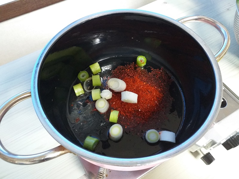 ② 이제 순두부찌개 끓이는 법에 핵심 포인트, 고추기름을 만들어 봅니다.