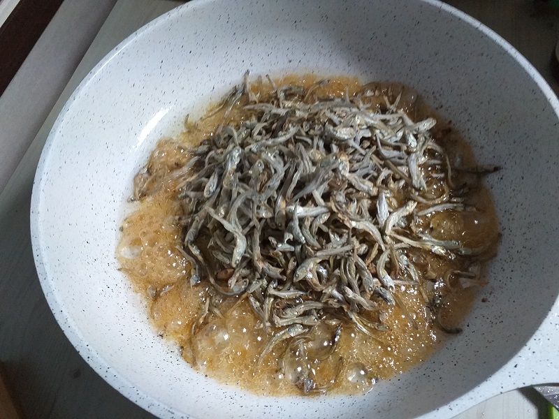 원래 레시피에는 멸치 중에 제일 작은 크기인 지리 멸치를 사용하지만 저는 선물받아 보관 중인 그 보다 조금 큰 멸치로 만듭니다. 그래도 훌륭하니 맛있습니다.