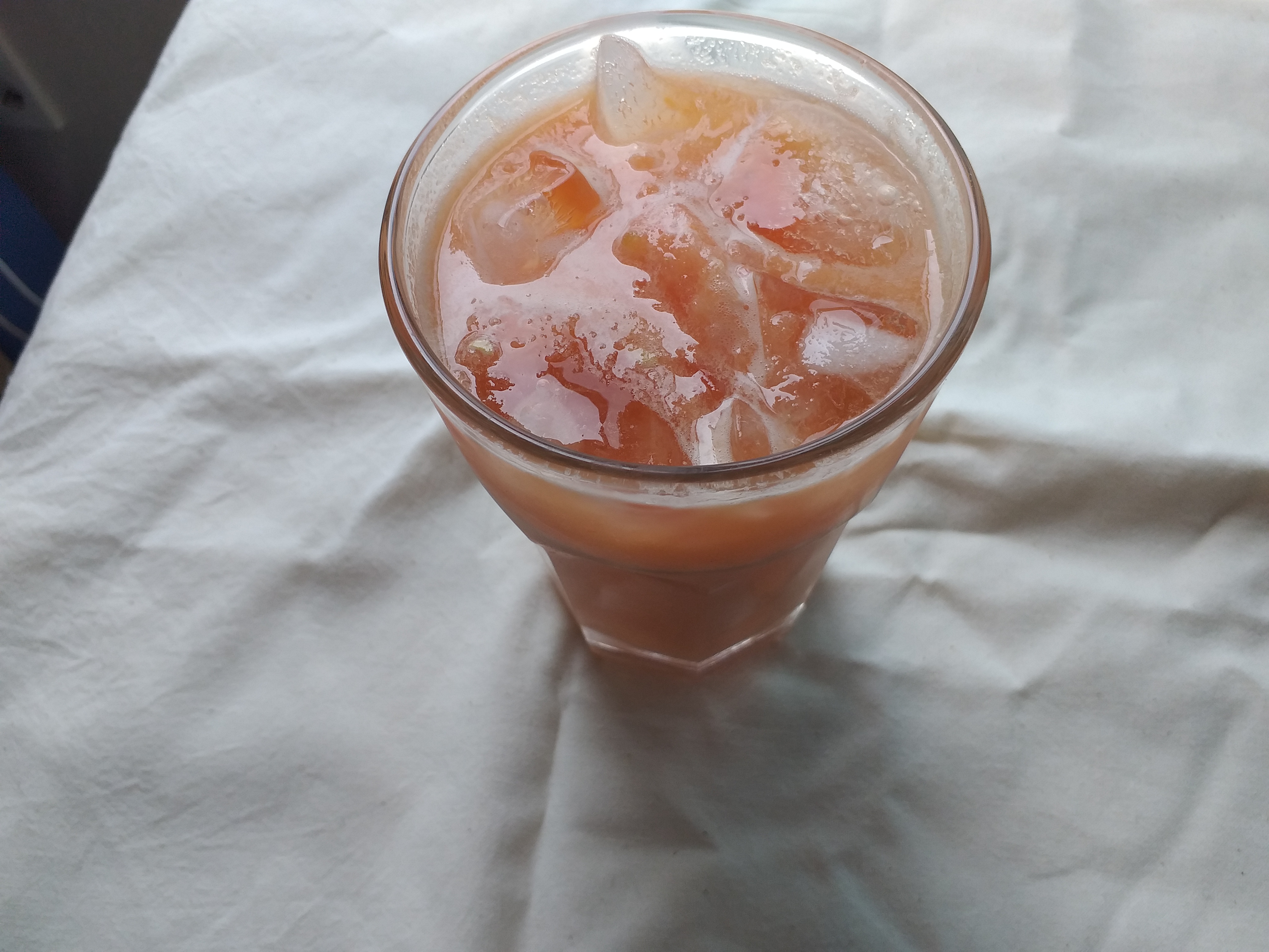 데친 토마토 200g, 레몬청 3큰술, 소금 한 꼬집, 생수 100ml, 얼음 적당량