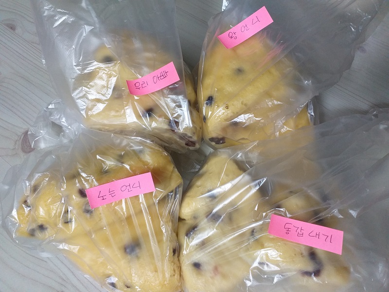 나눔 하고 싶은 사람이 많아 이 레시피 양으로 총 2번을 만듭니다. 두 번째 반죽 발효는 반죽 볼보다 큰 냄비에 물을 끓이고 그 냄비에 넣고 뚜껑을 닫아 발효시키니 3시간 동안 따뜻함이 유지됩니다. 머리를 쓰니 손, 발이 편합니다.