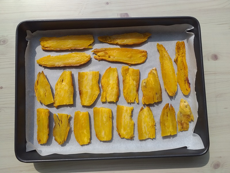 이런 군고구마 말랭이 만드는 법, 지난겨울에는 유난히도 많이 만들었답니다. 우리 딸을 위해, 그리고 베트남에서 놀러 와 있는 동생 친구를 위해 두 배로 만들었다지요. 100kg가 넘는 거구인 베트남인인 동생 친구도 고구마가 식이섬유를 많이 함유해 장 건강에 최고, 다이어트에 최고라는 사실을 잘 알고 있습니다. 만드는데 걸리는 시간과 노력에 비해 건조하면서 쑥~ 줄어드는 양이 많이 아쉽지만, 달콤함은 배가 되고, 쫀득~ 쫀득함까지 더해져 정말 맛난 건강간식이 됩니다.