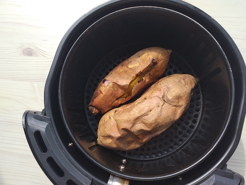 저는 에어프라이어에 195'c에서 15분씩 3번 뒤집어 가며 총 45분 구워 줍니다. 에어프라이어에 고구마를 구울 때, 약간의 물을 추가하여 구워 주면 겉만 바싹 타는 현상을 방지해 촉촉한 꿀맛~ 군고구마를 만날 수 있으니 참고합니다. 이는 다른 에어프라이어 요리 시에도 응용해주면 좋으니 참고합니다.