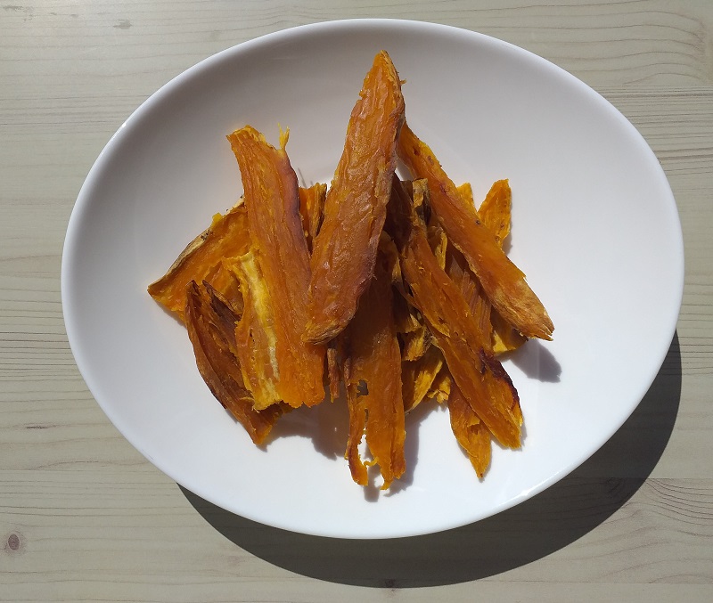 수동요리 메뉴 건조기능을 이용하면 고구마 3개 기준 70'C에서 3시간이라는데 저는 고구마 두께를 두껍게 썰어서인지 건조시간이 두 배는 더 걸리니 참고합니다.