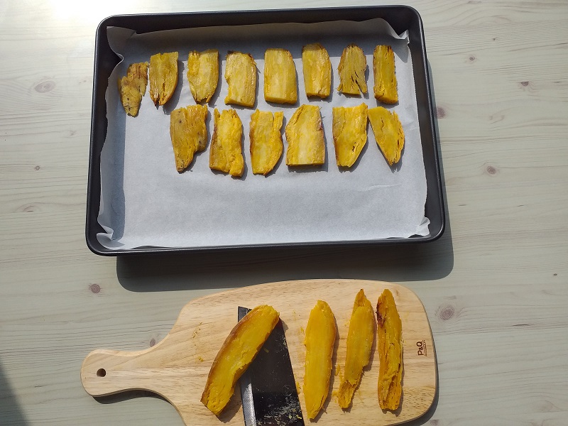 한번 맛보면 쉽게 멈출 수 없다는 단점, 삶거나 찌는 방법보다 칼로리가 2배 넘게 차이가 나니 혹시 다이어트 중인 이웃님들은 고구마를 굽거나 말려먹는 이 방법보다는 삶거나 찌는 방법을 추천합니다.