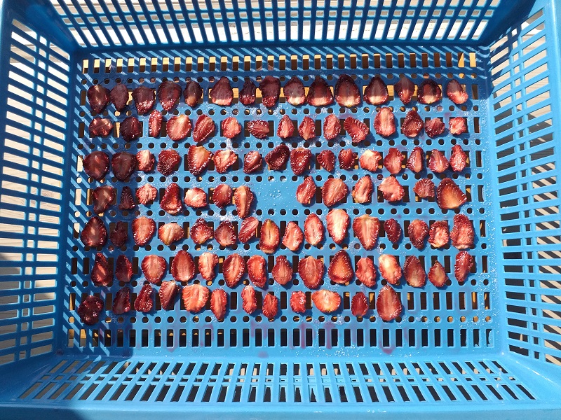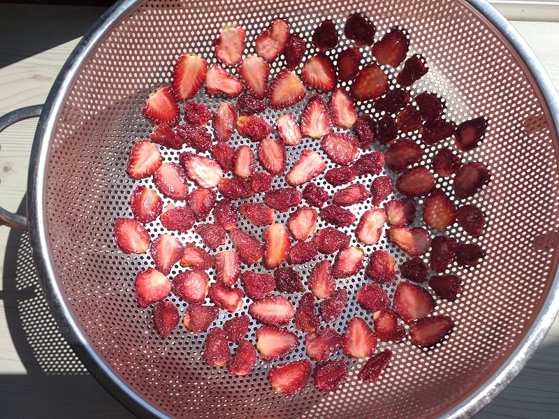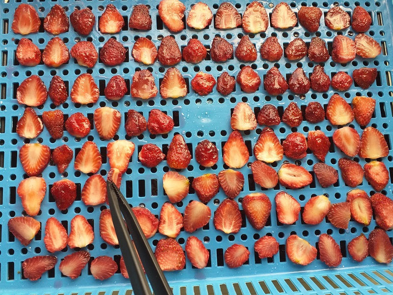 아까워 자투리 딸기로 딸에게 맛을 보입니다. 맛을 본 딸이 옆에서 성화입니다. 건조기로 빨리 말리면 되지 않는 냐고.