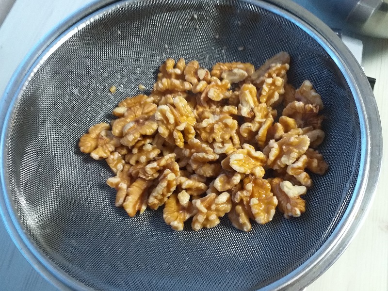 끓는 물에 호두 50g을 넣고 30초 데치는 전처리 과정, 호두를 데친다고 깜짝 놀라셨나요? 호두를 데쳐주면 호두에 쓴맛과 불순물을 제거해 더 건강하고 고소해진 호두를 만나게 됩니다. 번거로워도 빼먹지 않고 꼭 해 줍니다. 절대 후회하지 않습니다.