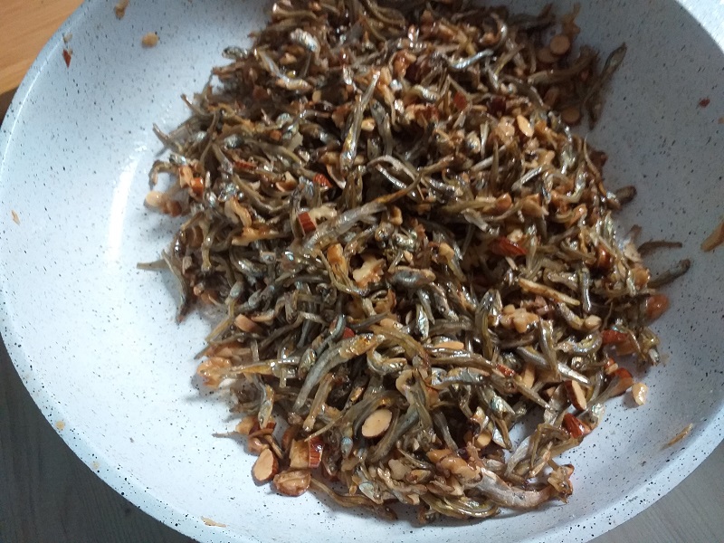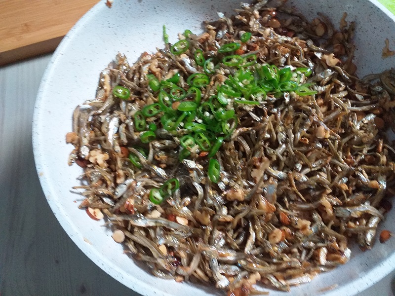 원래 레시피에는 멸치 중에 제일 작은 크기인 지리 멸치를 사용하지만 저는 선물받아 보관 중인 그 보다 조금 큰 멸치로 만듭니다. 그래도 훌륭하니 맛있습니다.