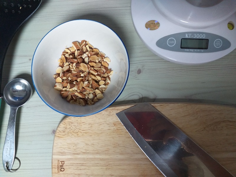 아몬드 슬라이스를 사용해도 됩니다. 저는 어느 정도 도톰한 아몬드가 더 고소하고 맛있어 통아몬드를 구입해 썰어 줍니다. 아몬드는 물에 데치지 않냐고요? 아몬드는 끓는 물에 데치는 과정 없이 미지근한 물에 살짝 담가 헹군 후 볶아주면 되는데, 저는 미리 볶아둔 아몬드가 있어 사용합니다.
