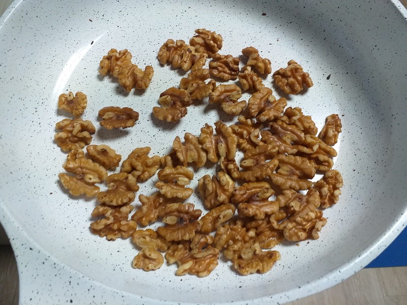 끓는 물에 호두 50g을 넣고 30초 데치는 전처리 과정, 호두를 데친다고 깜짝 놀라셨나요? 호두를 데쳐주면 호두에 쓴맛과 불순물을 제거해 더 건강하고 고소해진 호두를 만나게 됩니다. 번거로워도 빼먹지 않고 꼭 해 줍니다. 절대 후회하지 않습니다.