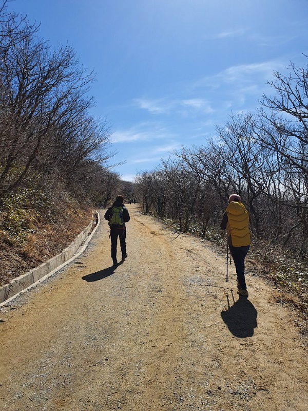 사진에서 볼 수 있듯이 평소 나무 내음 진하게 나는 집에서 가까운 동네숲길을 주로 걸었던 저에게는 차가 다녀도 되는 이런 길이 다소 생소한 길입니다. 하지만, 구름 한 점 없이 맑고 깨끗한 하늘과 공기가 그런 단점은 금방 잊게 해 줍니다.