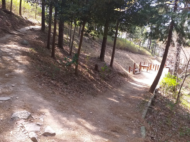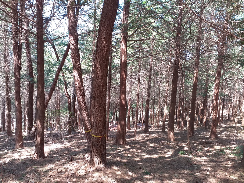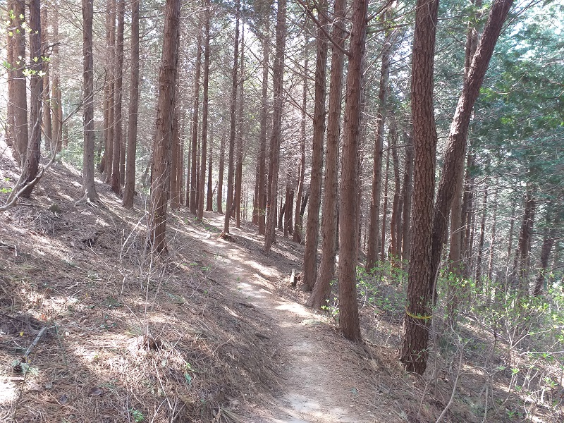 이렇게 넓은 등산로를 사이에 두고 양쪽으로 제가 가장 좋아하는 피톤치드 가득한 편백나무 숲이 조성되어 있습니다.