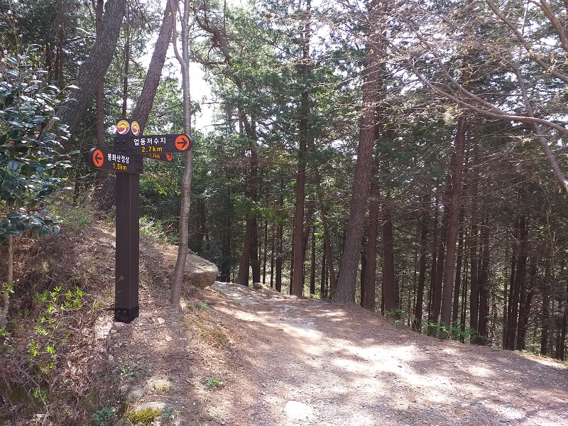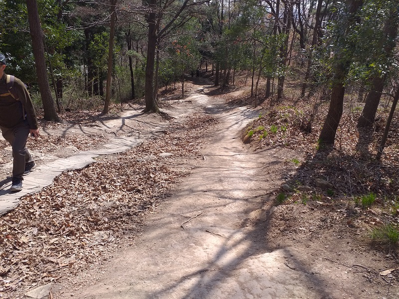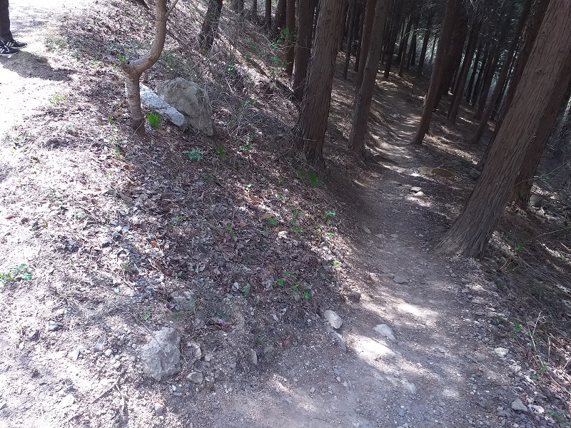 내려갈 때는 왼쪽 편백나무 숲길이 아닌 오른쪽 넓은 등산로를 택합니다.