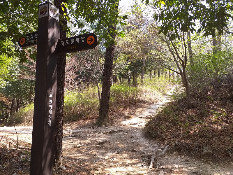 보통 봉화산 정상 푯말이 있는 넓은 등산로를 따라 등산을 하는데, 저는 사람들이 적게 다니는 좁은 오솔길로 등산하는 걸 즐깁니다. 숲과 그리고 나무와 좀 더 가까워집니다.