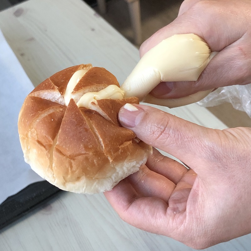 7. 남은 크림치즈를 빵 윗부분에 장식합니다. (생략 가능)