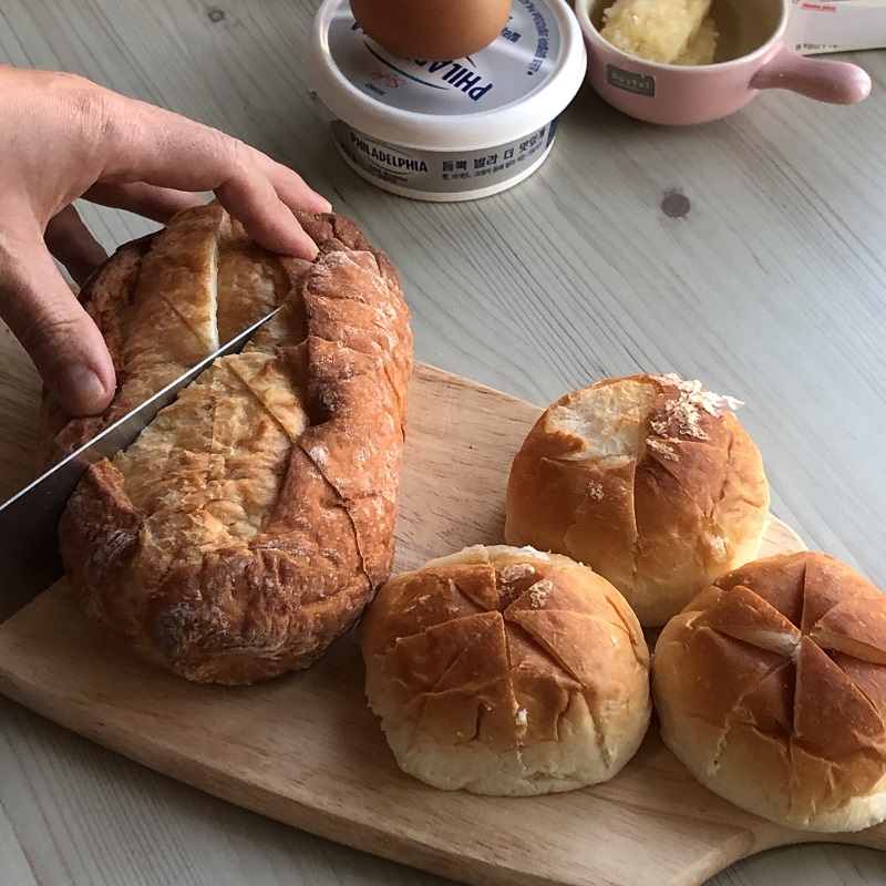참고한 베이킹 유튜버 서담님의 레시피에 모닝빵을 이용한 육쪽마늘빵은 제 입맛에 너무 달고 느끼해서, 저는 좀 더 하드 한 빵을 구입해 만듭니다.