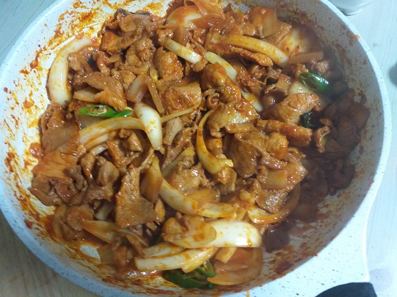 삼겹살을 먹을까 하다가 불판 준비하고 굽고, 뒷정리까지 일이 너무 많아 패스~ 코로나 19 때문에 하는 고강도 사회적 거리두기에 동참하기 위해서라도 외식 또한 참습니다. 그래서 간편하게 뚝딱 만들어 먹을 수 있는 제육볶음 레시피로 선택합니다.