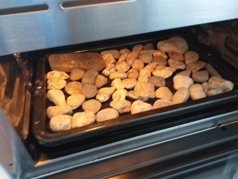 오븐 문을 열면 급격하게 열이 떨어지는 가정용 소형 오븐이라 자갈을 깔아서 사용하니 급격한 오븐 온도에 변화를 잡아주는데 도움이 됩니다. 베이킹 유튜버 앙코님께 배운 꿀팁 중 꿀팁으로 집 가까운 곳에 있는 개천가에서 주워 와 깨끗이 세척 후 사용했으니 홈 베이킹 좋아하는 이웃님들 참고하여 도움이 됩니다.