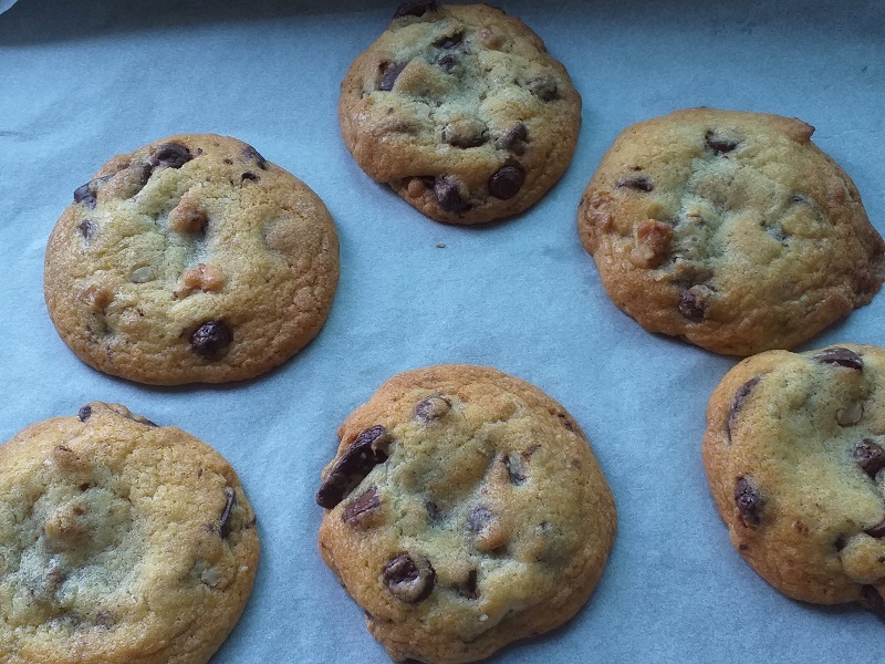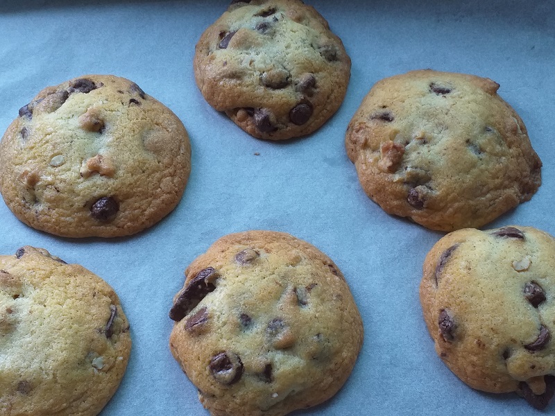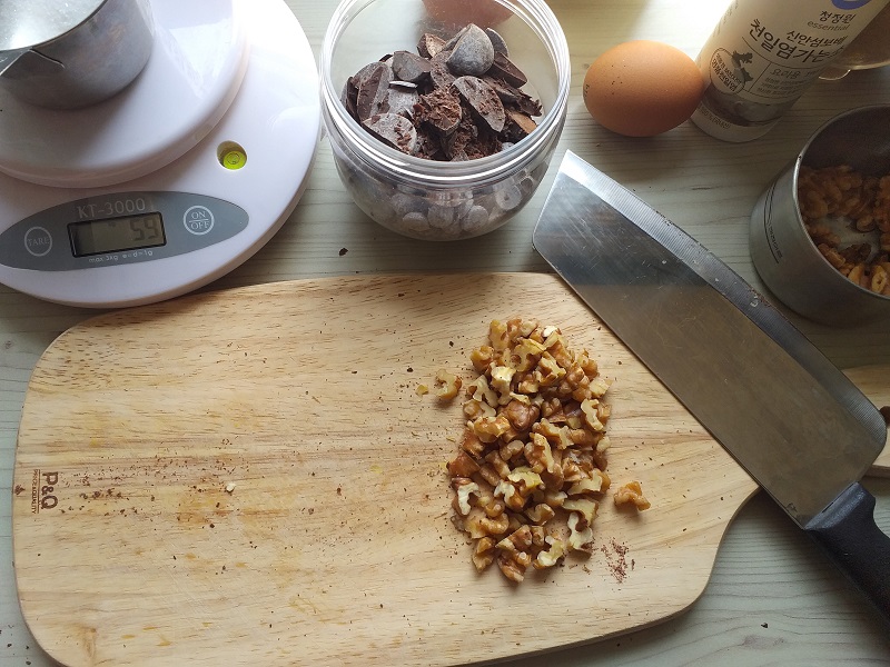저는 레시피대로 만들었을 때 너무 달다는 댓글들이 많아 이쁜 크랙은 과감히 포기합니다. 설탕 양을 줄이고, 다크커버춰 & 초코칩 양도 줄인 후 호두를 추가해서 단 맛을 최대한 줄입니다.